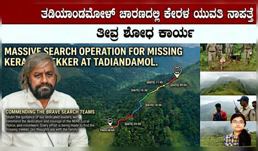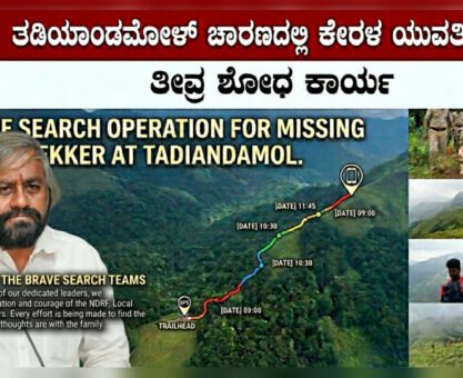 ಕೊಡಗಿನ ಎತ್ತರದ ಗಿರಿಶ್ರೇಣಿ ತಡಿಯಾಂಡಮೋಳ್ ಬೆಟ್ಟಕ್ಕೆ ಚಾರಣಕ್ಕೆ ಬಂದಿದ್ದ ಕೇರಳದ ಕೊಯಿಕೊಡು ಮೂಲದ ಯುವತಿ ಎಸ್. ಶರಣ್ಯ (36) ಕಳೆದ ಮೂರು ದಿನಗಳಿಂದ...