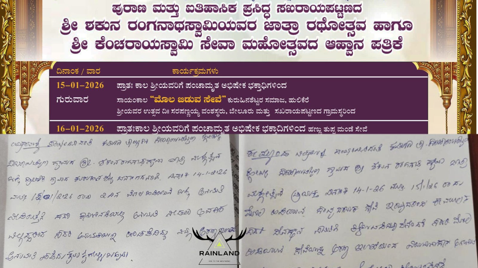 ಚಿಕ್ಕಮಗಳೂರು ಜಿಲ್ಲೆ ಕಡೂರು ತಾಲೂಕಿನ ಸಖರಾಯಪಟ್ಟಣ ಪುರಾಣ-ಐತಿಹಾಸಿಕ ಪ್ರಸಿದ್ಧ ಶಕುನ ರಂಗನಾಥಸ್ವಾಮಿ ಜಾತ್ರೆ ಹಾಗೂ ಕೆಂಚರಾಯಸ್ವಾಮಿ ಸೇವೆ ಜನವರಿ ೧೫ರಿಂದ ಆರಂಭವಾಗಲಿದೆ. ರಾಜ್ಯ ಧಾರ್ಮಿಕ ದತ್ತಿ ಇಲಾಖೆ ( ಮುಜುರಾಯಿ ) ಸೇರಿರುವ ದೇಗುಲಕ್ಕೆ ಕಂದಾಯ ಅಧಿಕಾರಿಗಳೇ ಆಡಳಿತಾಧಿಕಾರಿಗಳು. ಸಖರಾಯಪಟ್ಟಣದ ಜನರು ಹಿಂದಿನಿಂದ ನಡೆಸಿಕೊಂಡು ಬಂದಂತಹ ಸಂಪ್ರದಾಯ `ಮೊಲ ಬಿಡುವ ಸೇವೆ’..! ಹಿಂದೆಲ್ಲಾ ಜಾತ್ರೆ ನಡೆದಾಗ ಮೊಲಗಳನ್ನು ಹಿಡಿದು ತಂದು ಪ್ರದರ್ಶನ ಮಾಡಿರುವ ಉದಾಹರಣೆಗಳು ನಮಗೆ ಲಭ್ಯವಿಲ್ಲ. ಆದರೆ ಈ ವರ್ಷ ಜಾತ್ರೆ ಆರಂಭದ ದಿನ ಸಂಧ್ಯಾಕಾಲದ ಪೂಜೆಯಲ್ಲಿ ಕೆಲ ವಂಶಸ್ಥರು ಹಾಗೂ ಗ್ರಾಮಸ್ಥರಿಂದ ಕಾಡು ಮೊಲಗಳನ್ನು ಬಿಡುವ ಸೇವೆಯನ್ನು ಆಹ್ವಾನ ಪತ್ರಿಕೆಯಲ್ಲೇ ಮುದ್ರಿಸಲಾಗಿದೆ. ಆ ಪತ್ರಿಕೆಯ ಕೆಳಗೆ, ತಹಸೀಲ್ದಾರ್, ಉಪತಹಸೀಲ್ದಾರ್, ಉಪವಿಭಾಗಾಧಿಕಾರಿ ಹಾಗೂ ಜಿಲ್ಲಾಧಿಕಾರಿಗಳ ಹೆಸರುಗಳನ್ನೂ ಹಾಕಲಾಗಿದೆ. ಇಷ್ಟೇ ಆದರೆ ಪರವಾಗಿಲ್ಲ ಆದರೆ ಇನ್ನೊಂದು ಅನುಮತಿ ಪ್ರತಿಯೊಂದು ಬುಧವಾರ ಸಂಚಲನ ಮೂಡಿಸಿತು.